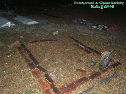 If anybody knows anything about the Beresford area it is fairly secluded their are alot of small lakes, train tracks, trails which were all part of a plantation at one time. Now today the community has built up to some houses in the area and of course this cemetery which holds many secrets in itself. The cemetery seems to have been for black settlers which were very abundant in the area and perhaps some were servants to the local plantations in the 1800s. Upon some further studying their seems to be a grave dating back to the 1860s. Many of the stones are leaning, piled on each other, weathered, some even are found off into the woods hidden. How I found this cemetery is just driving around after our Stark Plantation investigation. I was curious to where this one dirt road led and when I came out on it I looked to my left and seen this stone entrance with piles of stones near the road. When I got a closer look I had discovered this forgotten jewel. The whole front wall to the cemetery is collapsed and it goes very far back. Although we basically investigated the first couple hundred feet inside the cemetery and saved the rest for another time. You will not see alot of paranormal photos here or anything but just know their are ghost here and lots of them. My son seen many of them just standing their watching and I could feel perhaps numerous spirits here. It seems as if their is a real sad lonely type of feeling here. The cemetery is also very dark lots of trees, brush etc so it really has a gloomy feeling and if any cemetery had a pioneer type of feeling to it this would be it. James one of our investigators spent the night here once he told me he stayed right by the front so this perhaps is not one of those cemeteries that is full of gardens, fountains, and flowers. But rather a very morbid place! © By Rick-AngelOfThyNight