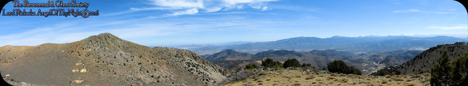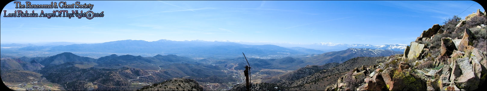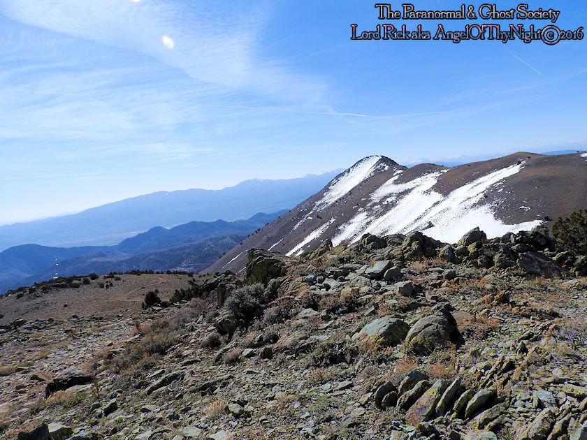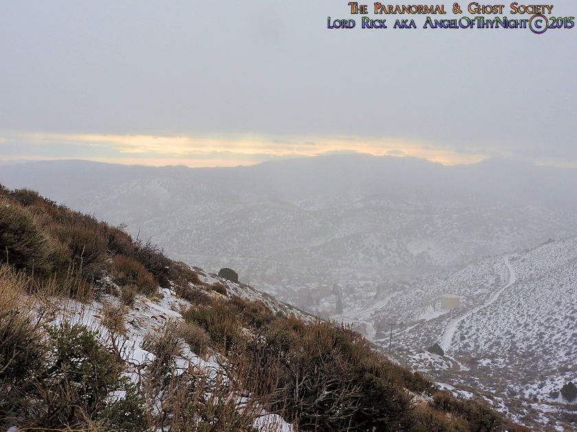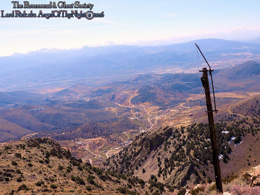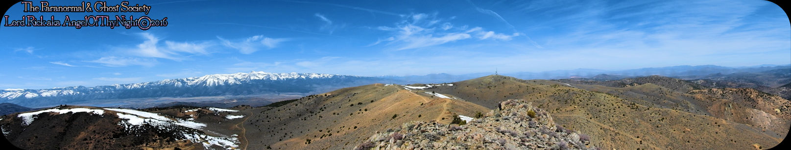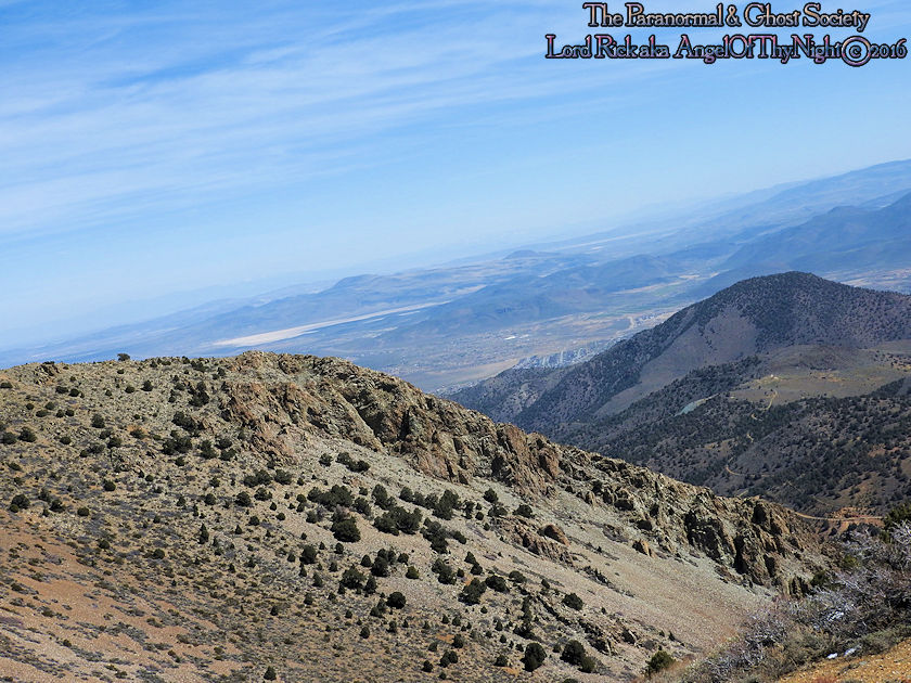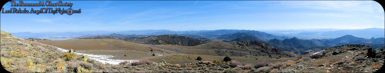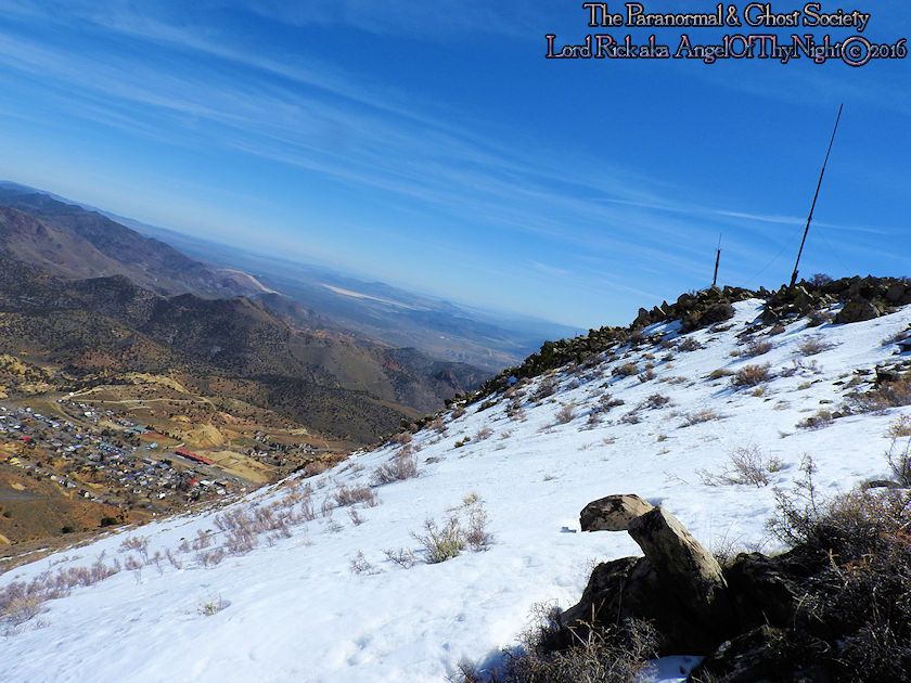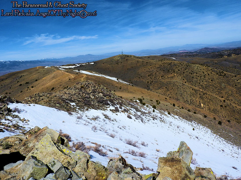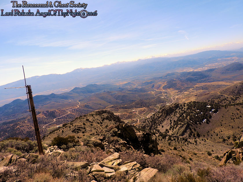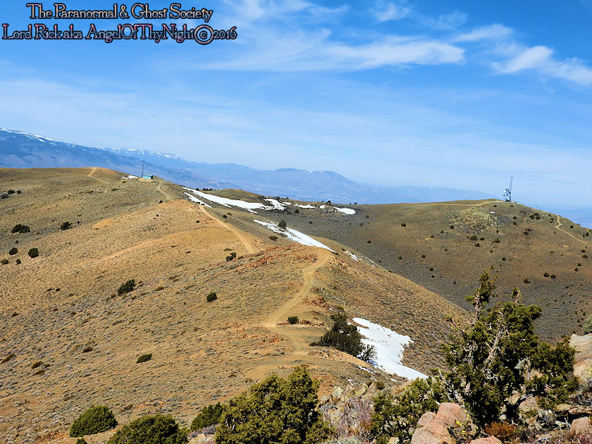aimlessly these hills above town. Mount Davidson and Ophir Hill are the two highest peaks found within the Virginia Range but also they overshadow Virginia City below. While one is perhaps going out to dinner, chasing the paranormal, drinking a beer, off roading, hiking or merely sitting on your front porch everyone is able to see the giant V on the side of Mount Davidson which at night is lit up. Not much has changed prominent historical figures like Mark Twain mention this mountain in his book "Roughing It" for example. But back in the day when the first settlers came to the region they called this Sun Peak. Ophir Hill just below it resides on the other side of the saddle of Mount Davidson so really the two are one of the same considering their relevant geology that overshadow the town below. The entire reasoning behind this project is so I could put the area into perspective for our viewers. Standing at the top of the Virginia Range let alone Mount Davidson I can see multiple paranormal and haunted locations our society has done research into. Its amazing to stand above Virginia City and see over forty locations that include peaks you have summated, mills, mines and historic sites that you been to. Without a doubt despite this factor atop of the Virginia Range is truly like being in another world that so very few get to see. This world contains wild horses, high desert forest, snowcapped peaks, pristine views of multiple valleys and cities. As a matter in fact on a clear day you can see for at least 200 miles. I enjoy adding projects like this to our website for many good reasons one of them is it gets you the viewer to get off your couch and actually see some of the locations we have done. Nobody would know about certain places if we did not share our work or the beauty of what we do. I spend allot of time in Virginia City I guess you can say in a sense that is my stomping grounds but what I do not see there is people who explore above town as a majority of people are often glued to tourism when in fact little do they know the wilderness awaits them just a short hike or jeep road above them. Mount Davidson standing at 7,864' is the highest point in Storey County Nevada it stands perched directly above Virginia City Nevada. They may have called it Sun Peak over a century ago because the sun does set directly over it at dusk. This is the highest mountain in the Virginia Range. As a matter in fact if you stand on top of it you will get 360 degree views of the entire range. On a clear day one can see Reno, Carson City, Dayton, Gold Hill, Silver City, Mound House, Washoe City and Sparks Nevada. Their are also great views of Eagle Valley, Washoe Valley, Pine Nut Mountains, Stillwater Mountains, Tule Peak, Jobs Peak, Genoa Peak, Hobart Peak, Carson Sink, Dayton Valley, Washoe Lake, various Peaks of the High Sierras, Sugarloaf Mountain, Great Basin views and many other numerous landmarks. Surrounding Mt Davidson are smaller peaks such as Ophir Hill and Mount Bullion which can all be accessed close by. Back in the day Ophir Hill, Mount Bullion and Davidson were sites of heavy mining. Even today if you hike around you will find some collapsed mine shafts, dump piles and a few fenced off tunnels. Really that is all remains of the intense mining that once transpired near these peaks and within the canyons which surround them. But at one time stamp mills, miners, mines, shafts and private cabins filled these hillsides. As a matter in fact some of the shafts near the peak of Mount Davidson ran for 2000' underground which connected with tunnels systems that the miners could take under the city to get to where they had to go. A good example of miners using such shafts to descend under the city would be the Chinese who were often heavily discriminated upon. Therefore they would mine the shafts of Mount Davidson all day and by the evening rather then walk the streets which were dangerous they took a tunnel which came out in China Town. Mark Twain who at the time worked for the Territorial Enterprise would often smoke a cigar out front and stare up at Mount Davidson. I also hear he summated it on one occasion then again many of the towns folks in the 1800's tried to make the climb to the top yearly. I cant say I blame them back then you did not have cell phones or computers it was merely you verses nature that is how the locals entertained themselves. Mark Twain noted in his book "Roughing It" that he seen a flagpole on the summit which the flag was flown every 4th of July. I believe that very same flag pole still stands on the summit today therefore it is a piece of American History worth visiting besides the stellar views. Also at the peak is a written memorial by a Virginia City fireman and a tribute to the victims of 911. This is a rewarding journey only a true Nevadan could really understand the value of this mountain range which extends 30 miles from north to south and nearly 40 miles East to West. It is like no mountain range in Nevada due to its size alone while most Nevada ranges have a distinct north-south running ridge the Virginia Range has no single ridge and generally runs southwest-northeast. The Virginia Range is often confused with the Virginia Mountains which are located north of the Pah Pah Range and 25 miles north of the Virginia Range which more then often folks get the two confused. The southeast part of the range however which is mostly north of US Highway 50 is considered part of the Flowery Range a sub range connected to the Virginia Range. Its highest summits can be seen from Reno and even Carson City. As a matter in fact Mount Davidson, Ophir Hill and Mount Bullion all can be seen from nearby towns below. All three of the ranges tallest peaks we journeyed on all found within this addition on our website. I remember hearing years ago before people begin moving up into Washoe Valley that bigfoot sightings were occurring in the region back in the day. Of course many years ago th