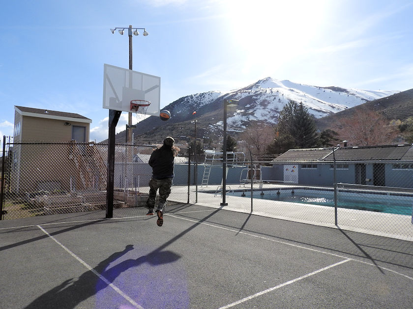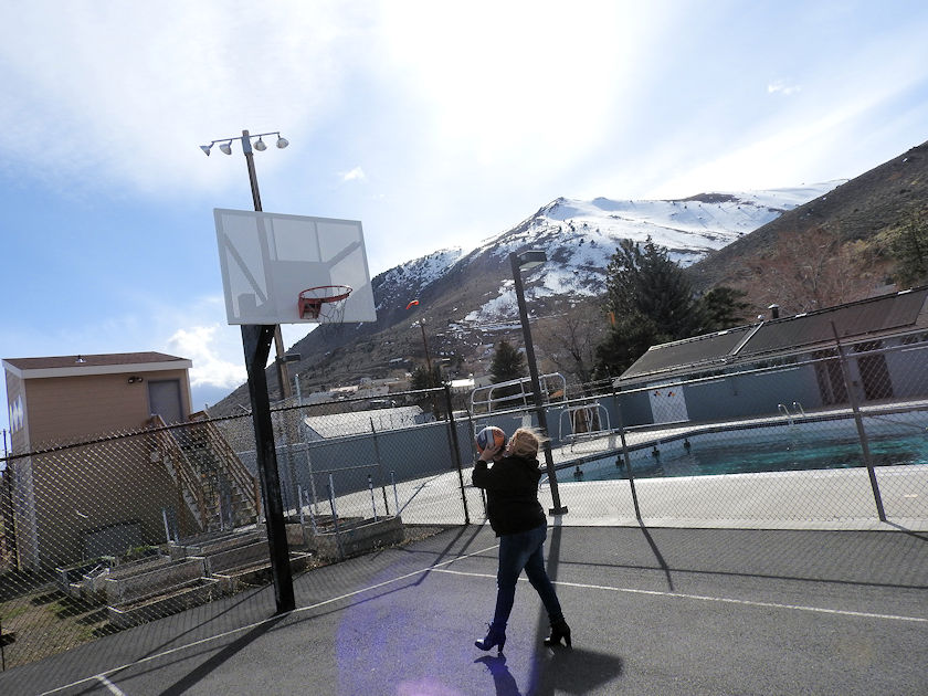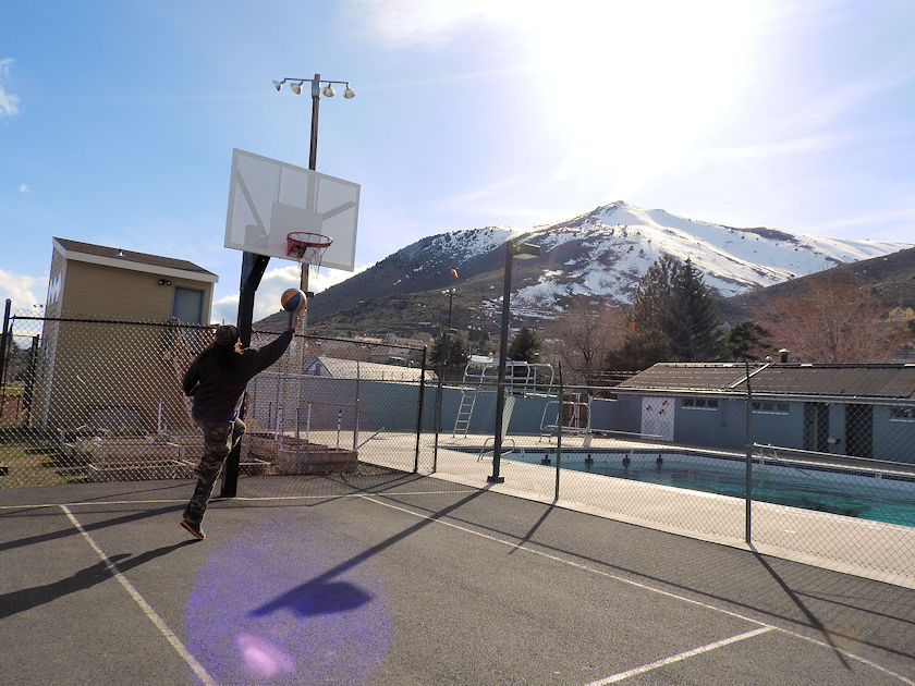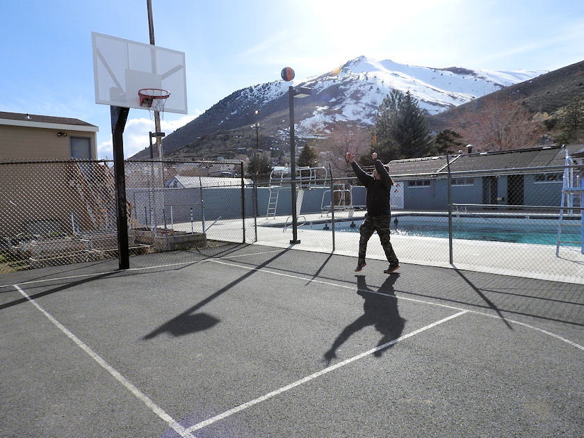 | Basketball Practice below Mount Davidson Winter of 2017 nothing like shooting hoops and peering up at the very snowy mountain you once stood on above Virginia City. |