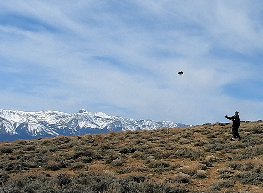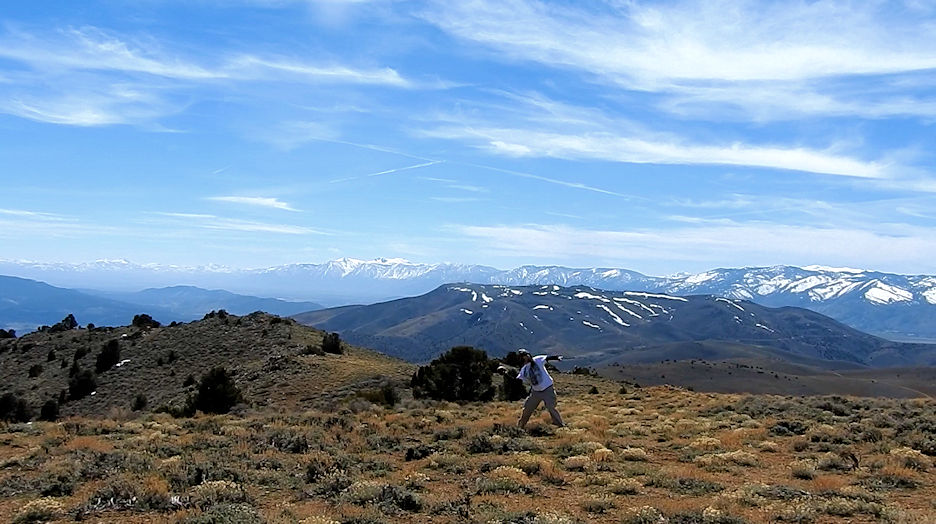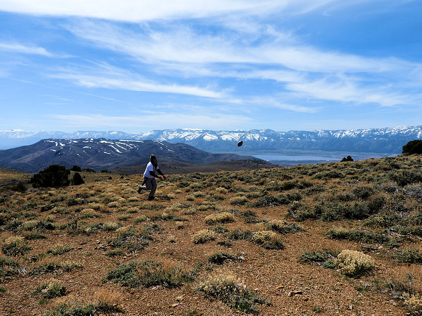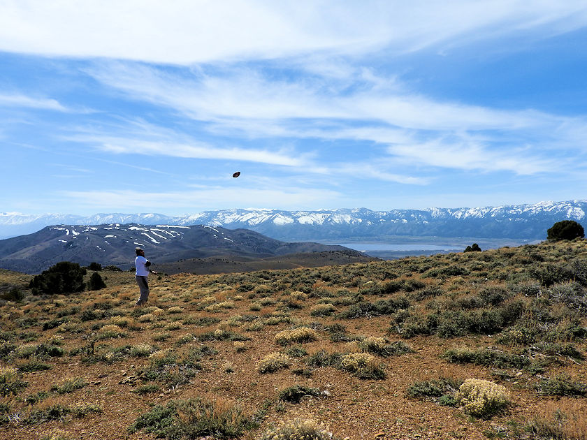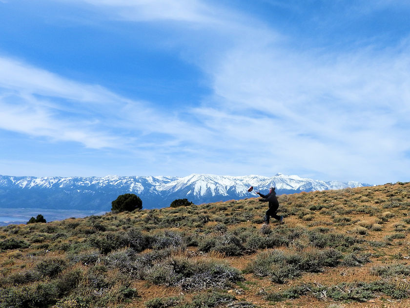 | Near the end of our second expedition I journeyed on over to Bullion Peak to play football at over 7k above Virginia City and with stellar views of Washoe Valley off in the background. Even in April the sierras are still covered in snow which just makes it all the more worthwhile to throw around the pigskin with stellar views. Mt. Bullion was mined for gold and just sits below Mount Davidson. Its not even that far of a hike to get to it and no less is a part of the Comdstock Lodes early mining history. |