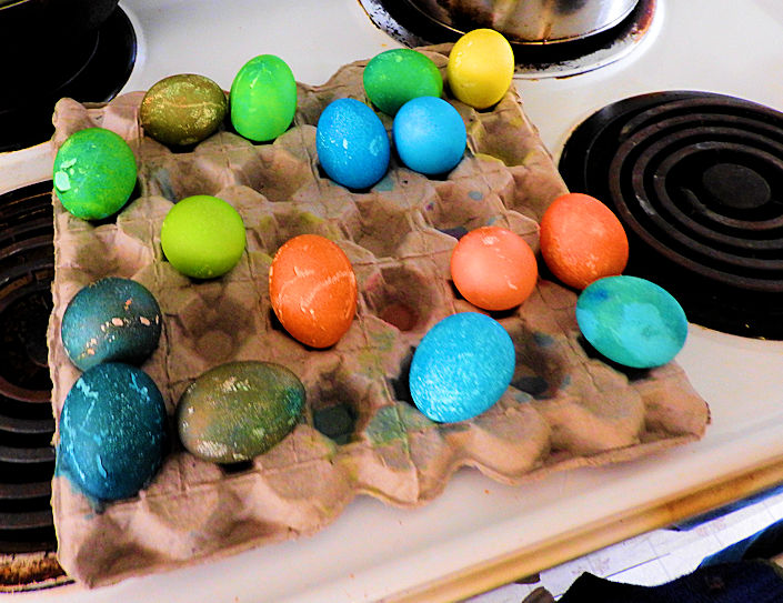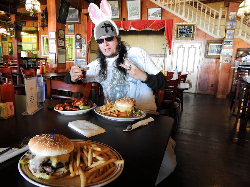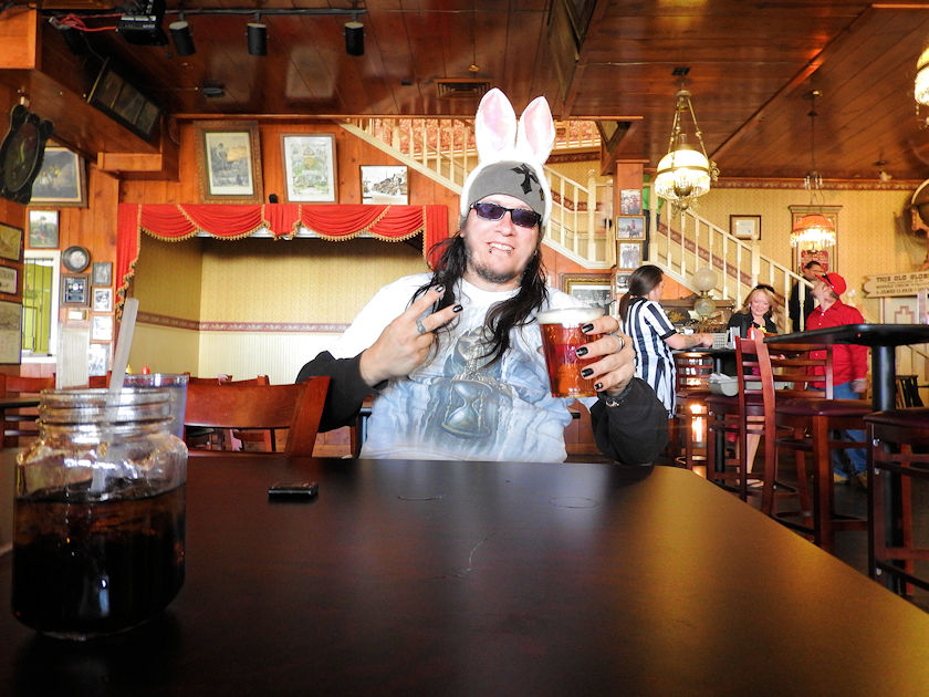 | After our second expedition at the top of Mount Davidson we made our way back down into Virginia City where we had suicide ales, steak burgers and BBQ wings. What a great way to finish the afternoon after hiking, playing football, exploring the Virginia Range and running with wild horses. Below is also our Easter which we celebrated when we had gotten home with colored eggs, pulled pork, chocolate cream pie, homemade red mashed potatoes, black olives and seasoned baked asparagus. This turned out to be a fine day with a mix of urban exploration, offroading, adventure, good eats and great times in Virginia City. |