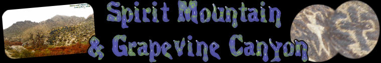 - - The Natives including the Hopi Tribe once believed that the world began here at Spirit Mountain also known as Avi-kwa-ame which is a very sacred site to the native american tribes present along the Colorado River....along where the three states of AZ, NV and CA. The grapevine canyon area is just one of the many deep canyons that run deep into this sacred mountain. Their are other names for the mountain such as Newberry Peak......Dead Peak and is rumored to be the center of creation for all Yuman Speakers. Sadly as mystical and beautiful the area is many tourist are ruining the location. It saddens me when I hike in such a place only to find water bottles.....wrappers....and vandalism such as spray paint. It makes you wonder why someone would do this to a site that is thousands of years old and has tales of even life after the great flood.. Spirit Mountain is 5,639 feet high and played a very large role in the relious and mythological beliefs to the Mohave, Hualapai, Havasupai, Yavapai, Pai pai and Maricopa Tribes. Notice I left out the Hopi because I read that they were here prior to other tribes. The Hopi Indians were said to survive multiple apocalypses and everytime one would occurr they would go underground. I believe hidden within Spirit Mountain is hidden cave or burial ground. Today three Native American Tribes continue to use this area for their tribal ceremonies and practicing of ancient traditions. It is named a traditional cultural property and also listed on the National Register Of Historical Places. Unfortunately not even that can protect this sites ancient history. Its a well visited area just very few dare to venture past the canyons treachurous walls of rock formations.....thorns and overgrown grapevines. The road that ran up into Grapevine Canyon was called Christmas Tree Pass because often the trees were decorated with ornaments. This was a local practice that was eventually banned because it was becoming to difficult to maintain. As I said a good thing doesnt last to long but I found that fact interesting. To the natives it was an eye sore I am sure since nature is meant to be preserved not decorated. When you are in Christmas Tree Pass you will come up to the entrance of Grapevine Canyon which boast a fresh water spring that flows down the canyons wash. In the canyon their are quite a few pools of shallow water and a few small waterfalls. Due to this fact it draws in Big Horn Sheep and other animals from the Newberry Mountains to graze and drink the cool waters. The first couple hundred feet at the mouth of the canyon are littered with Petroglyphs also known as rock art drawings. Some say their are more petroglyphs here then all of southern Nevada. I never did see that many Petroglyphs perhaps because they only grace the entrance of the canyon and we hiked deep into it. If you look further below you will see a photo of a UFO depicted on one of the rocks which greet those who dare enter the canyon. The southern Paiute tribe are said to once have camped in the canyon itself while the ancestors of the Mohave Tribe also known as the Amacava built rock shelters around 1100 A.D. Their are many rock formations we crawled into that could be used from shelter. Their are burial mounds within the canyon and today its still a very active area for pilgramages. Rumor has it that some of the best views of the Southern Colorado River can be seen here including the city of Laughlin. I would not know because when I explored the area their was fog thicker then pea soup. I stood on a peak and couldnt even see the canyon we hiked up into. The odd rock formations on Spirit Peak had fog around them giving this place a very eerie feeling. One of the most unusual mysteries to this area is the petroglyphs which are said to contain photos of flying ships.....possibly ancient astronauts as well. In simple terms scholars believe that since the petroglyphs are over 1000 years old and that air craft did not exist during this time it was speculated that the ancient tribes experienced encounters of the third kind maybe even fourth. Also deep within the canyon is an ancient totem or statue which was apparently vandalized which was at one time said to have mystery origins or something rather relevant to those Petroglyphs. I guess that the reasoning behind visiting this site is to give skeptics food for thought that if these tribes depicted space ships in their rock art then isnt it possible that their is life outside of our solar system that once perhaps visited this ancient site? What it really comes down to is that the Shamans believed this place held supernatural powers. I somewhat believe it too you can feel something in the air here its different then other locations I hike and explore. This is a powerful place and I get to share this journey with all of you one taken with my family as we spent hours exploring all its wonders. Remember those who venture to this location keep in mind some canyons are almost impossible to get out...their are drop offs.....and it is an ancient site. With that being said treat the area the way you like to be treated appreciate it....take photos....leave foot prints and nothing more! © By Lord Rick - Grapevine Canyon & Spirit Mountain - Action Shots - Nightfall - Grapevine Canyon Petroglyphs Newberry Peak, NV http://www.johngregg.com/gra1.htm For the Yuman-speaking inhabitants of the Colorado River region, no location was more sacred than Avikwa'ame, or Spirit Mountain, which we call Newberry Peak, in southernmost Nevada. According to the Mojave creation myth, the oldest spirit was Matavilya, made from the mating of Earth and Sky. Matavilya had two sons, Mastamho and Kaatar, and a daughter, Frog. Matavilya committed an unwitting indecency that offended his daughter, who then killed them. Mastamho directed the cremation and mourning ceremony for his father and, when completed, strode up the Colorado River Valley. When he got to the top Mastamho created the river b