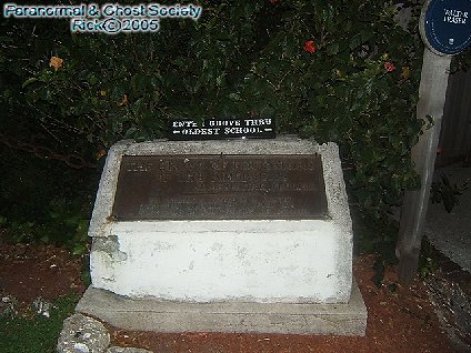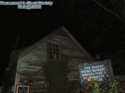 The oldest schoolhouse in the United States dates back to the year 1716 when it was the homestead belonging to Juan Genoply. The house did appear on the tax rolls in the year 1716 and is said to have existed long before then. The house was constructed of red cedar wood and cypress. Wooden pegs were used to keep the timbers in place. Everything was built by hand including the nails. This is as old fashioned as your going to get. When this was a living quarters it had no running water, electricity, kitchen, or privy. The drinking water had to be drawn from the well. The kitchen was housed in a separate quarters on the grounds this was too reduce the risk from fire and eliminate excess heat since the Florida summers are long and hot. The privy was later dug out away from the building with a enclosure for privacy. The house was just a single room and Juan Genoply was not married so it was just enough to suit his needs. Eventually he did get married and the house was made into a school. So they made there living quarters upstairs for his family and used the downstairs as the classroom. In 1788 the school house was the first co-ed school educating girls and boys together. Today if you were to visit the school house you would see various figures dressed during that time period attire. The Animatronic figures of children and the school master tell you about themselves and a typical school day. There are textbooks used by students, school artifacts, cooking utensils of that time period. If you visit here you get a free honorary diploma for your visit. Behind the school house there is a garden where the kitchen resides, privy and well where water was drawn. There is also a 250 year old pecan tree which existed even when school children attended class. The garden has many tropic plants like bird of paradise and hibiscus. One could sit on a bench and enjoy the inspiration this historical place represents. There is also a giant chain that wraps around the school house and is tied to an anchor. This was added in 1937 when a hurricane threatened St. Augustine so they added it to secure the wooden school house and prevent it from being damaged. Rumors of the old school house being haunted may be very true. As I recall one person photography a child looking out the window although it could be one of the Animatronic figures in the window its hard to say. But the little school house has an eerie sense to it the type where you can look up into the upper second story window and feel totally watched. I mean not only is it the oldest school house in the nation it is perhaps the most haunted as it sits in the heart of St. Augustine. We are really happy that we were able to bring you an investigation here. © By Rick-AngelOfThyNight